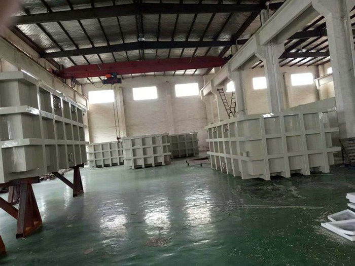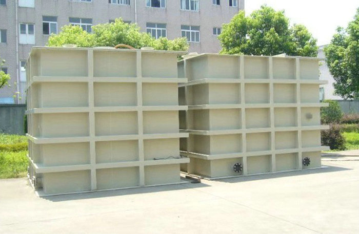 一種工業(yè)廢水降解槽,包括鼓泡池,所述鼓泡池內(nèi)設(shè)有隔板,所述隔板將所述鼓泡池分割為若干分布于同一直線上的水槽,所述水槽設(shè)有溢流口,相鄰的水槽中的溢流口沿垂直于溢流槽分布方向的方向錯開,溢流口部位距離水槽底面的高度為6~13厘米。水槽分布于同一直線且溢流口彼此錯開,能夠優(yōu)選防止廢水流過水槽時產(chǎn)生回流現(xiàn)象。水槽內(nèi)的水深只能為6~13厘米。更容易混合均勻,且不容易生產(chǎn)噴濺現(xiàn)象。
